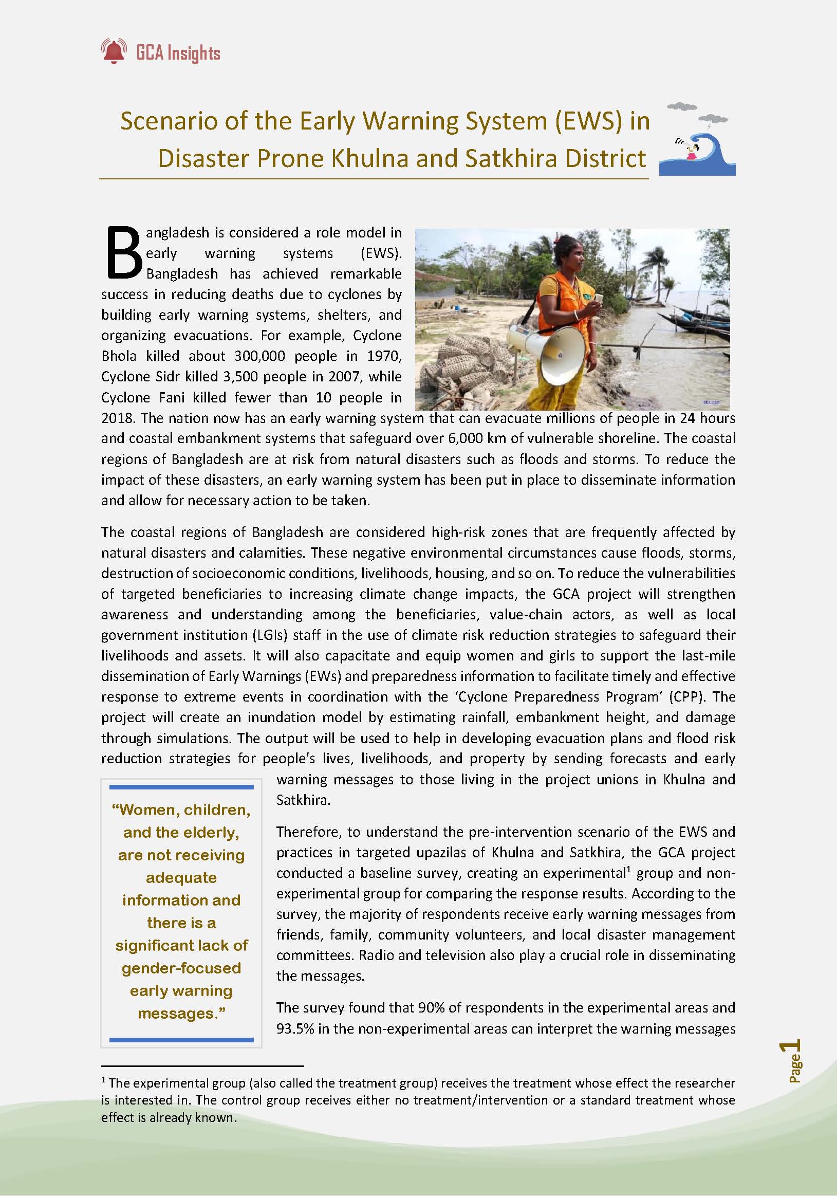 Scenario of the Early Warning System (EWS) in Disaster Prone Khulna and Satkhira District